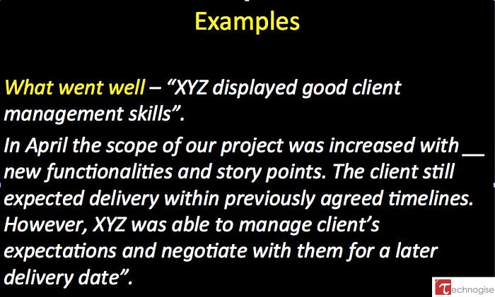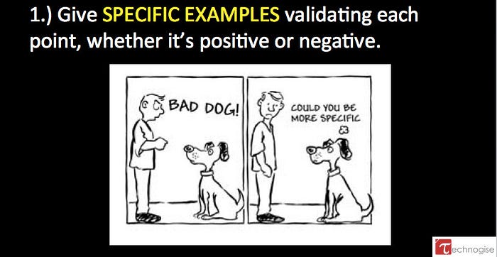 Specific examples give validity & justification to the feedback we give. Here are a few examples: